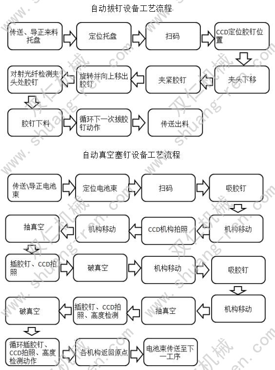 設(shè)備名稱:全自動拔插膠釘機(jī)(全自動換膠釘線)包括: 自動拔膠釘設(shè)備 和 自動真空插膠釘設(shè)備。
